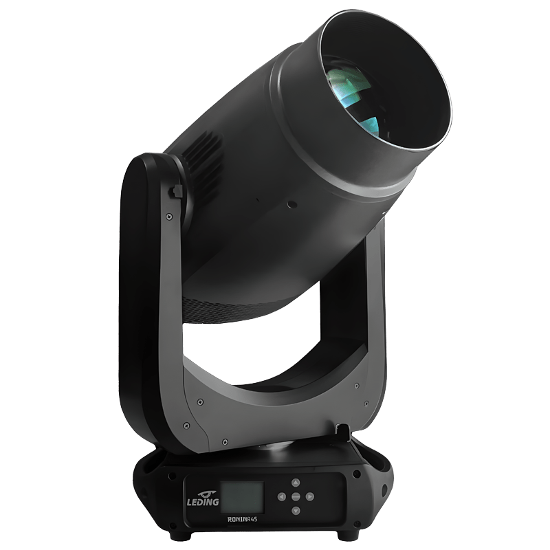 Ronin R45 is a new milestone for professional LED SPOT moving head, with high-efficient optics! Its subtle design creates a compact and lightweight fixture, with incredible strong output and comprehensive functions! Rapid and silent X/Y movement; 3-30°wide and precise zoom range, intelligent auto-focusing software; Fast and smooth CMY system; Well-chosen colors, fixed and Rotating gobos wheel, frost and prism effects, what’s more, the refined 16bit dimming simulate the classic halogen dimmer curve. The Ronin R45 is born for the Rental house, TV station, and Theatre.