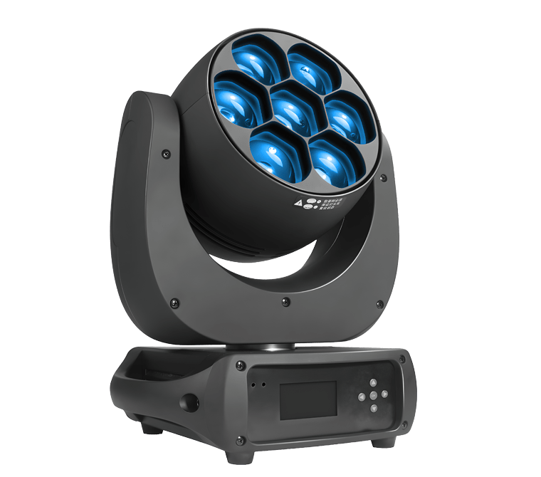 The Dynamo 7 is part of a new generation of moving head wash/beam fixtures, using 7 × 40W RGBW LEDs, individually controllable. The version 2 optimized the zoom motor, resulting in a quieter mechanism that allows a beam angle of 4.5–36° and a field angle of 9–52°. An ArtNet signal output has also been added.