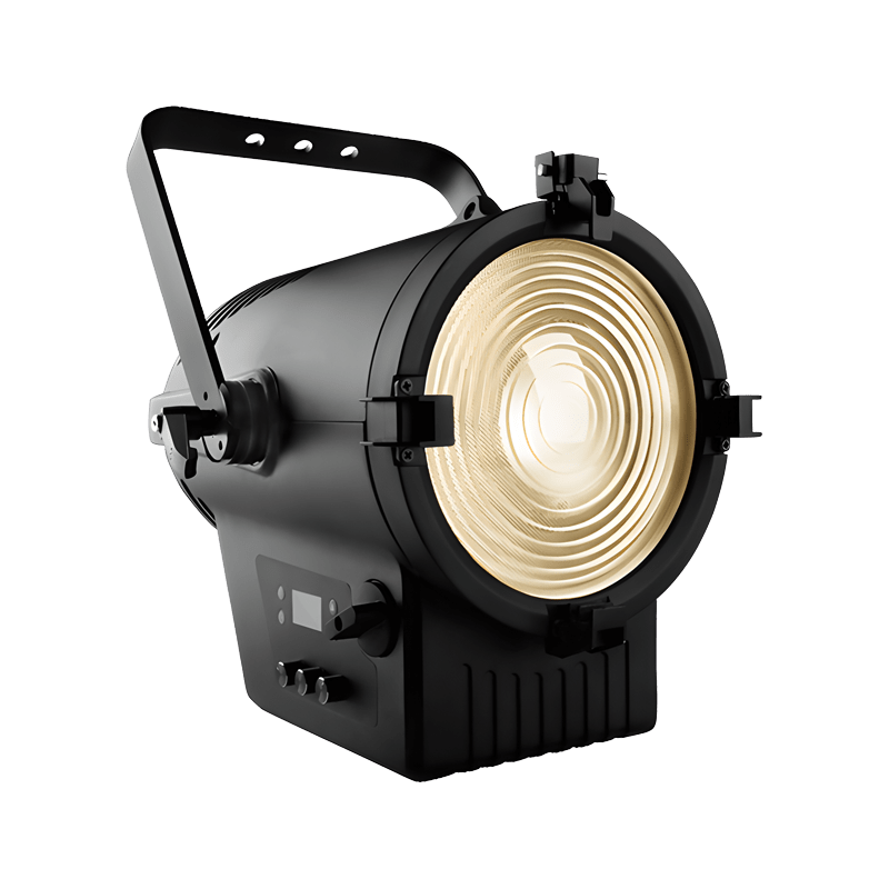 XPRESSION 250 TW is Tunable white Fresnel, Pure color temperature, built-in 0-100% dimmer, Beam angle 10°-60° (Manual control), Field angle 18°- 88°, simple and quick adjustment for choosing beam Angle base to different distances and locations, manual CCT bottom on body, FREZNO 250 TW with Tunable CCT 2700k -4500k this model is designed for theater, television, cultural centers, studio, multi-function meeting rooms and other small and medium applications.